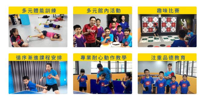- 班級特色:採用多元、樂趣的教學方式,透過適當的程度和年齡分組,讓孩子能接受最適合的教學,不僅學得放心、玩得開心,也能在學習過程中相互學習、一同奮鬥,此外,堅持每張桌子只安排3-4位孩子練習,以增加上桌練習時間,提高學習效率。